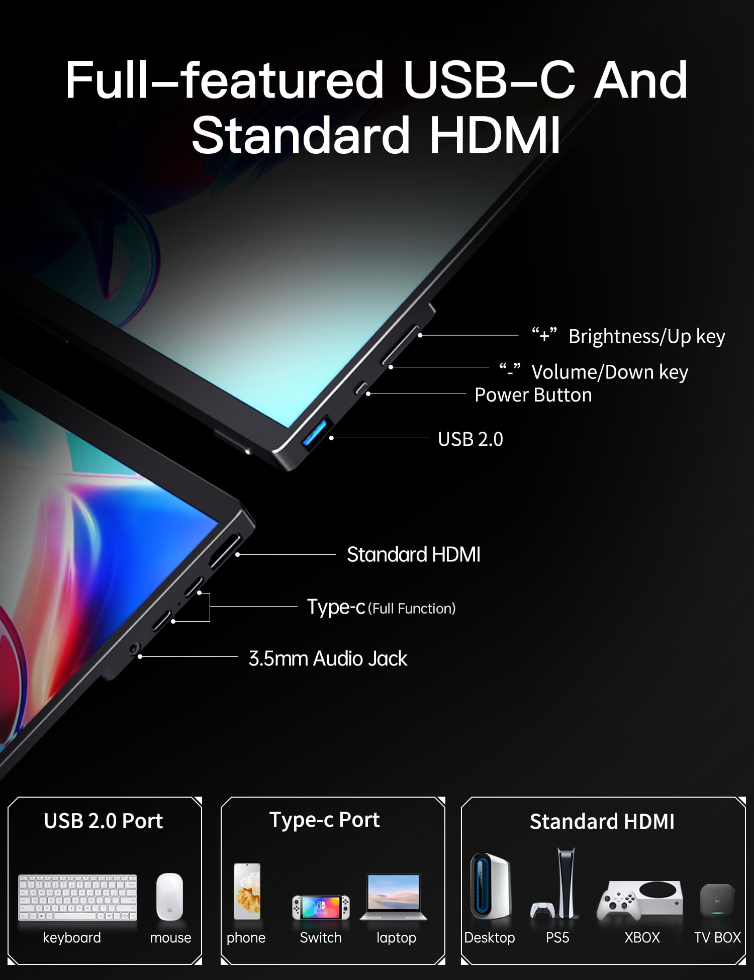 - Extensive Device Compatibility: Equipped with dual USB-C ports and a Standard-HDMI port, this portable monitor connects easily to laptops, PCs, select smartphones, gaming consoles, and more. A single USB-C cable powers the display when your device supports Thunderbolt 3/4 or USB-C DP Alt mode.